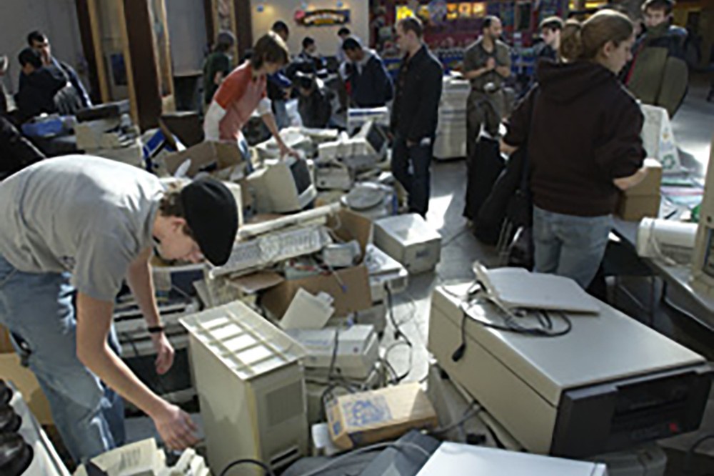 RITâs Student Alumni Union was transformed into a way station for old computers and other electronics headed for refurbishing or recycling on Jan. 27. A total of 3.9 tonsâabout twice last yearâs haulâwas collected from RIT students, faculty and staff during the third annual Electronic Waste Recycling Day, sponsored by RITâs Student Environmental Action League. The event prevented the unwanted gear from finding a final resting place at the bottom of a dump. -