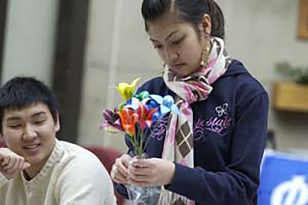 Students from RIT's Asian Culture Society share the beauty of origami flowers as part of their Valentine's Craft Sale. Origami is the Japanese art of paper folding. The sale takes place from 10 a.m. to 4 p.m. through Tuesday, Feb. 14 in the Student Alumni Union lobby. All proceeds benefit the American Cancer Society. -