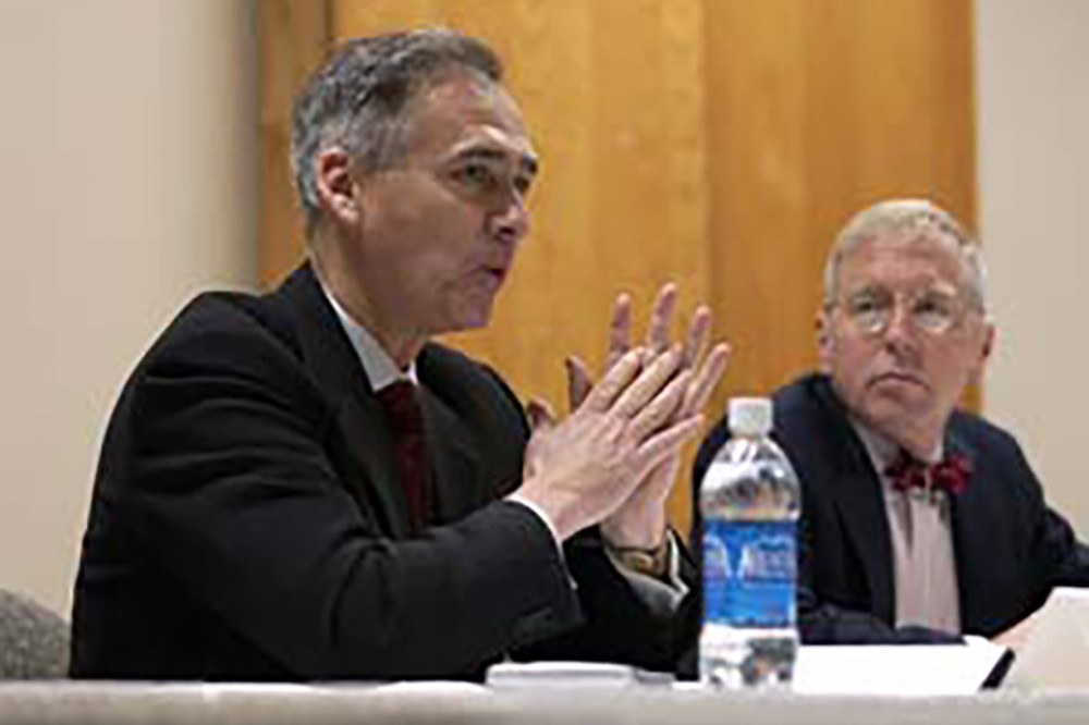 Thomas Curley, left, president and CEO of The Associated Press and a 1977 graduate of RIT's MBA program, shares his expertise during Journalism in the Digital Age, a symposium sponsored by RITâs Department of Communication. The Dec. 5 event looked at how traditional methods of news gathering and reporting are being revamped in response to the digital revolution. J. Ford Huffman, right, editor of USA Today, was also among the panelist. -