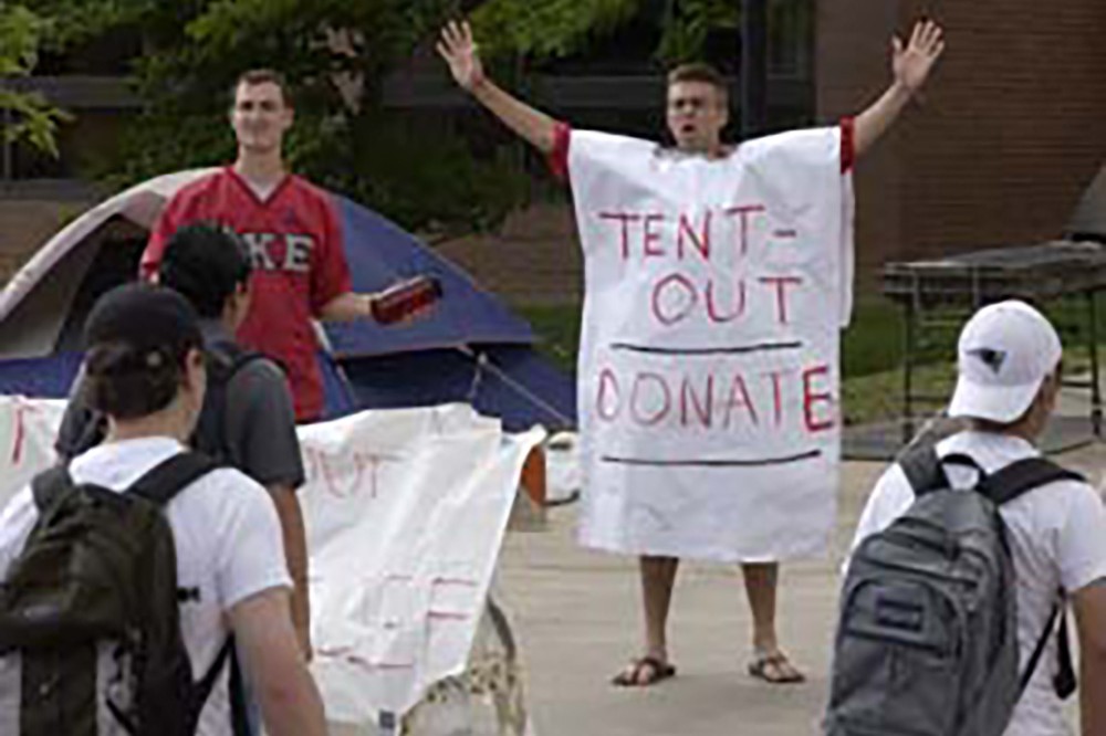 RIT's Greek community has set up shop along the Quarter Mile to raise money for Hurricane Katrina relief efforts. Members of Tau Kappa Epsilon are taking part in the annual Tent-Out event through Friday, Sept. 23. The group is living in tents for five straight days while seeking donations from students, faculty and staff. The event traditionally raises awareness and funding for Alzheimer's research. Members say they will hold an additional fundraiser this year to benefit that cause. -