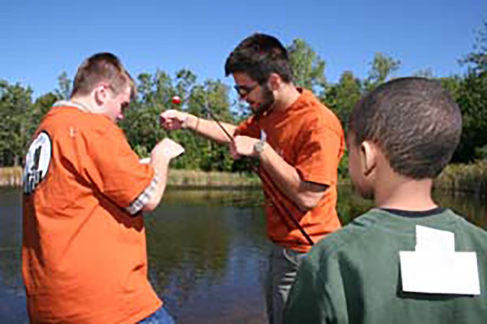 RIT students Peter Franklin, left, and Tom Rudick help with a fishing activity, organized by Compeer, as part of the university's second annual ROCS Day community service event Sept. 24. ROCS (Reaching Out for Community Service) Day offers a yearly opportunity for members of the RIT community to share the spirit of volunteerism. Community service projects were scheduled throughout Rochester and included alumni chapters across the country. -