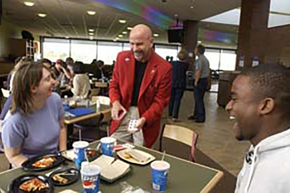 Magic and more highlighted the grand opening celebration of The Commons dining area in RIT's Hettie L. Shumway Commons on Sept. 29. The Commons features menu items from Hettie's Grill, Quiznos, Stone Oven Pizza & Pasta Cucina, Brick House Gourmet Pizza, and Cuisine du Jour. The facility serves students, faculty and staff and is open seven days a week. -