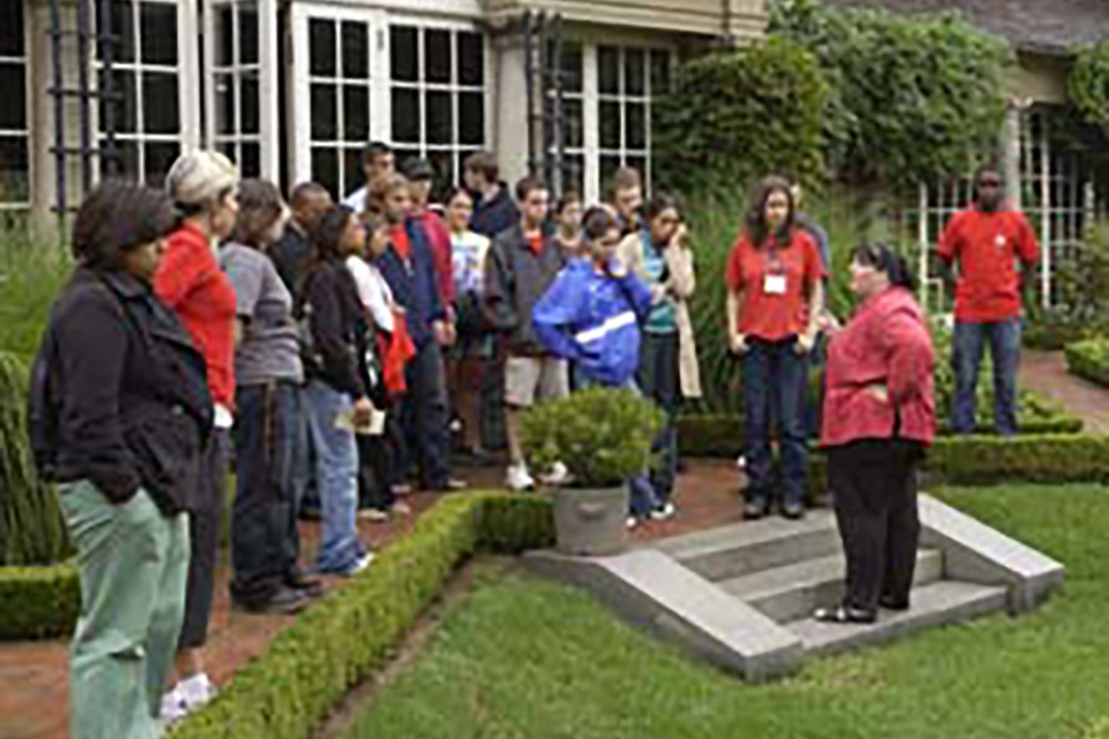 First-year students from RIT's College of Liberal Arts enjoy a history lesson during a visit to the George Eastman House on Aug. 31. Dresden Engle, public relations coordinator at the Eastman House, served as the tour guide. The facility was formerly home to the founder of Eastman Kodak Co. and now stands an international museum dedicated to photography. The field trip was among a variety of activities taking place for RIT's New Student Orientation. -