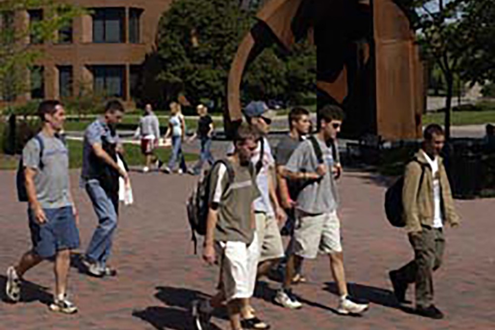 Extensive foot traffic returns to RIT's Quarter Mile as classes resume for the start of the 2005-06 academic year. More than 15,000 undergraduate and graduate students will populate the campus during fall quarter. Classes got underway on Sept. 5. -