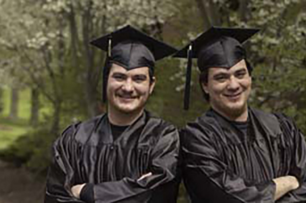 Brian Gonzales, left, entered the world 10 minutes ahead of his twin brother. Not to be outdone, Kevin Gonzales will beat his "older" brother to an RIT diploma by a full half hour. The brothers, who graduate from separate RIT colleges during almost simultaneous ceremonies, join more than 3,500 other graduates at commencement weekend, May 20-21. For more information, visit www.rit.edu/commencement. -