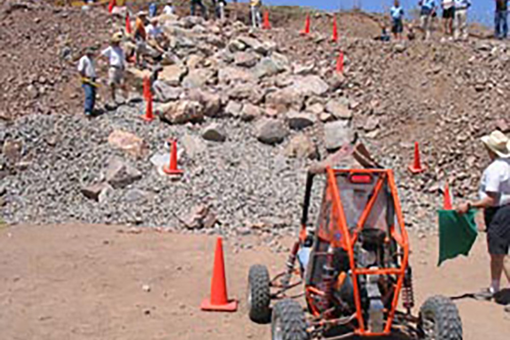 Justin Stabb, a second-year mechanical engineering technology major, prepares to traverse the rock crawl challenge in the Mini Baja 100, June 1-4, in Tinaja Hills, Ariz., near Tucson. The competition was RITâs second national contest this year. RIT earned top-ten finishes in acceleration, endurance and presentation events and 13th place overall among more than 120 challengers. -