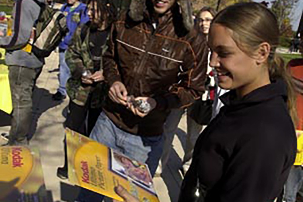 Students converged on the Kodak Quad for free Kodak photo paper and food as part of Kodak Day: âA Shared Commitment to Excellence,â on Oct. 28. For the second year in a row, Kodak and RIT celebrated their more than 100-year partnership with campus-wide events. There were giveaways, digital camera raffles, interactive product demonstrations and panel discussions for students looking to find jobs at Kodak. -