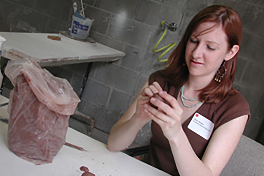 Second-year graduate ceramics student Holly Brown carefully forms miniature heads for spectators at the School for American Crafts walkthrough event on May 17. Students from the woodworking, glass, metals and ceramics programs put on demonstrations to entertain visitors while displaying their work from throughout the year. -