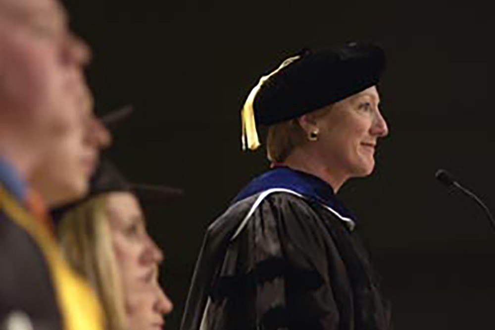 Xerox CEO Anne Mulcahy delivers RIT's commencement address, May 21, in RITâs new Gordon Field House and Activities Center. The event served as kickoff to RITâs 175th anniversary celebration, which will be commemorated throughout the 2004-05 academic calendar. -