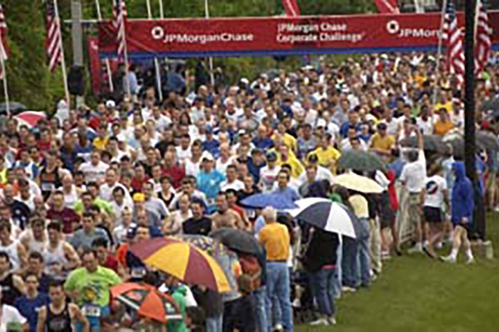 Nearly 10,000 runners toured the RIT campus Thursday as part of the JP Morgan Chase Corporate Challenge. This was the first time that RIT hosted the annual event, which has grown in size dramatically over the years. Rainy skies gave way to a beautiful rainbow at the conclusion of the race, as participants took part in a picnic-style celebration. RIT fielded 282 runners, the third largest team at this year's Challenge. -