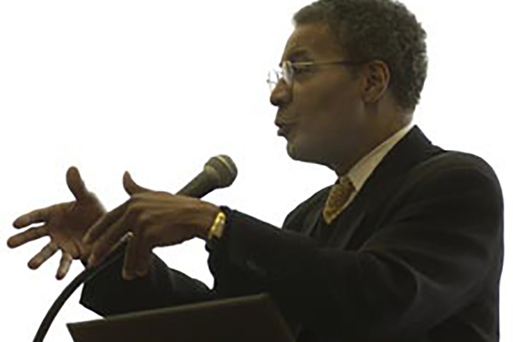 Alvin Poussaint, physician and technical advisor to The Cosby Show and Little Bill on Nickelodeon, addresses the RIT community in honor of Martin Luther King Jr Day, Jan. 15. Prior to his presentation, Poussaint spent time with students discussing their thoughts on race relations and attitudes on campus. -
