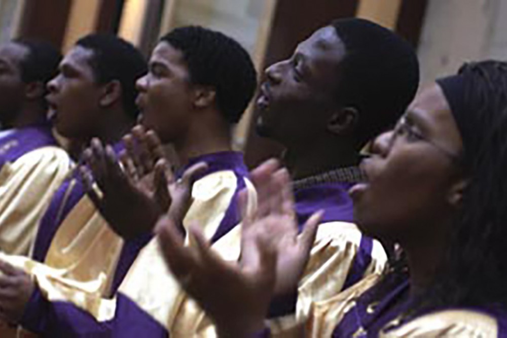 The RIT Gospel Ensemble performs in the Student Alumni Union lobby on Feb. 10. -
