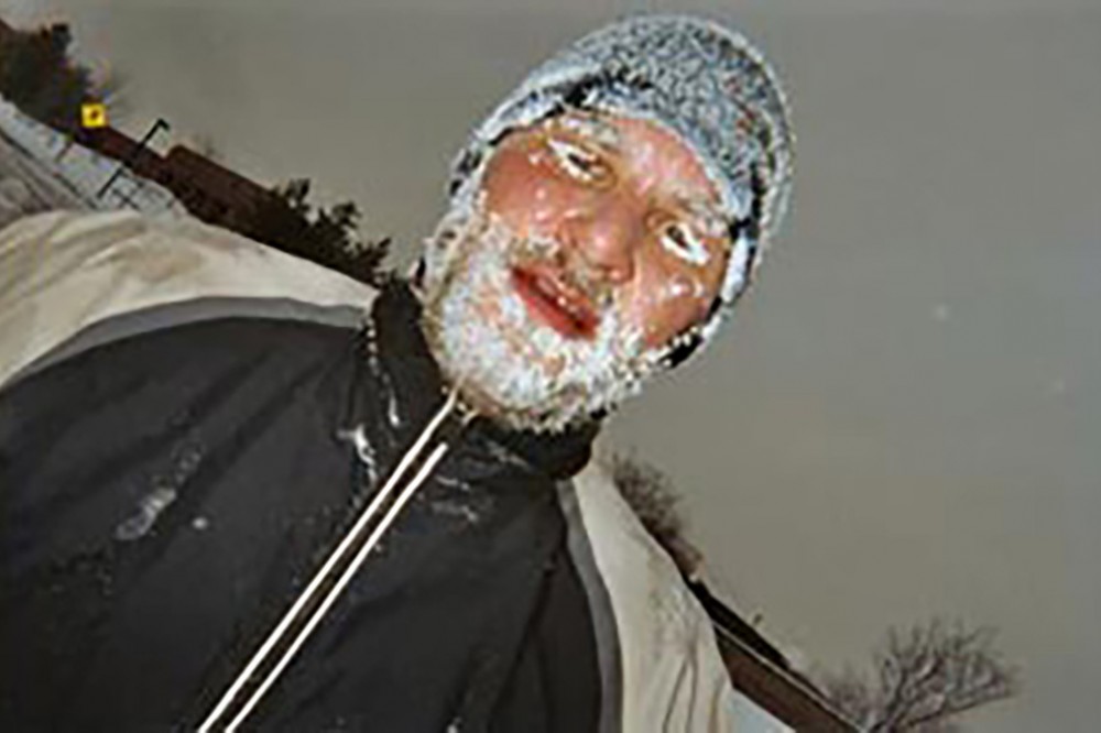 Randy Vercauteren, of RIT Facilities Management, finishes a five-mile run around campus in -6 degree weather on Jan. 14. Vercauteren is a member of Wednesday's Children, a group of RIT faculty, staff and students that run every Wednesday morning at 7 a.m. from parking lot S. -