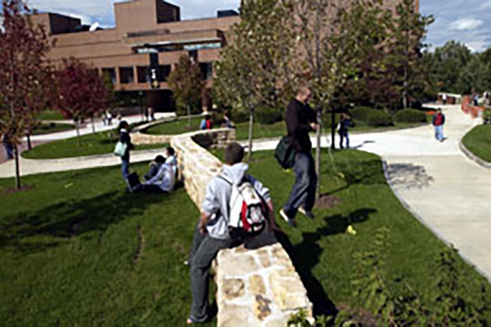 Students enjoy the newly renovated Eastman Kodak quad on the RIT campus. -