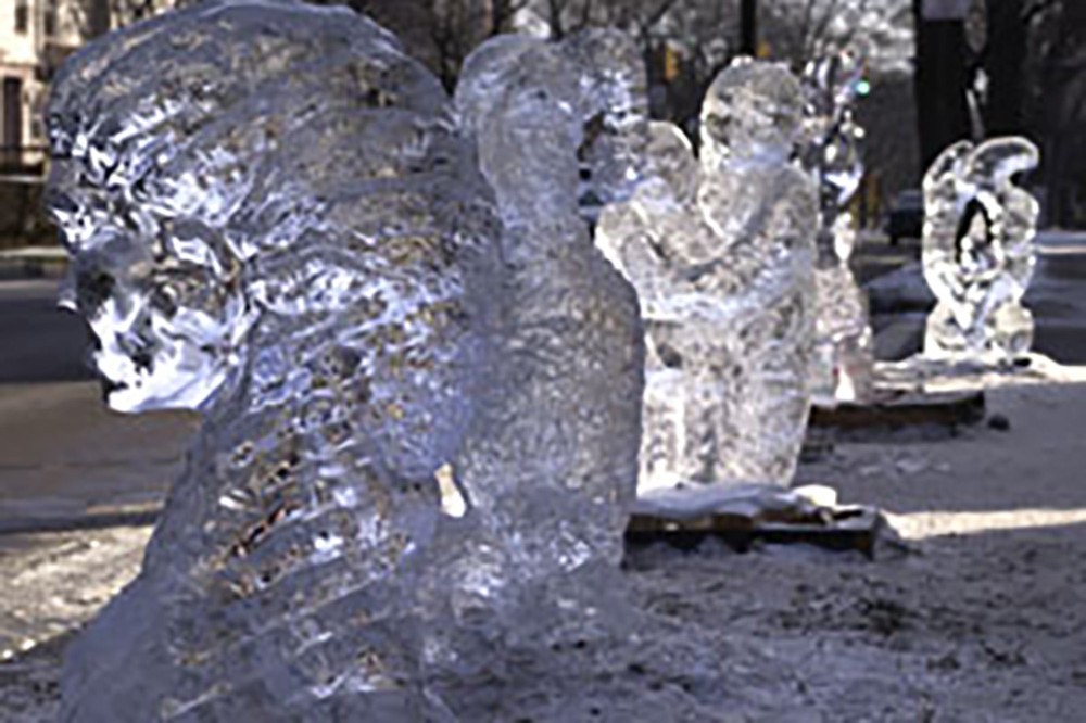 RITâs School of Art students, faculty and alumni chiseled their way through six blocks of iceâweighing 300 pounds eachâfor Gallery râs annual show-stopping display during the Park Avenue Winter Fest on Dec. 4. -