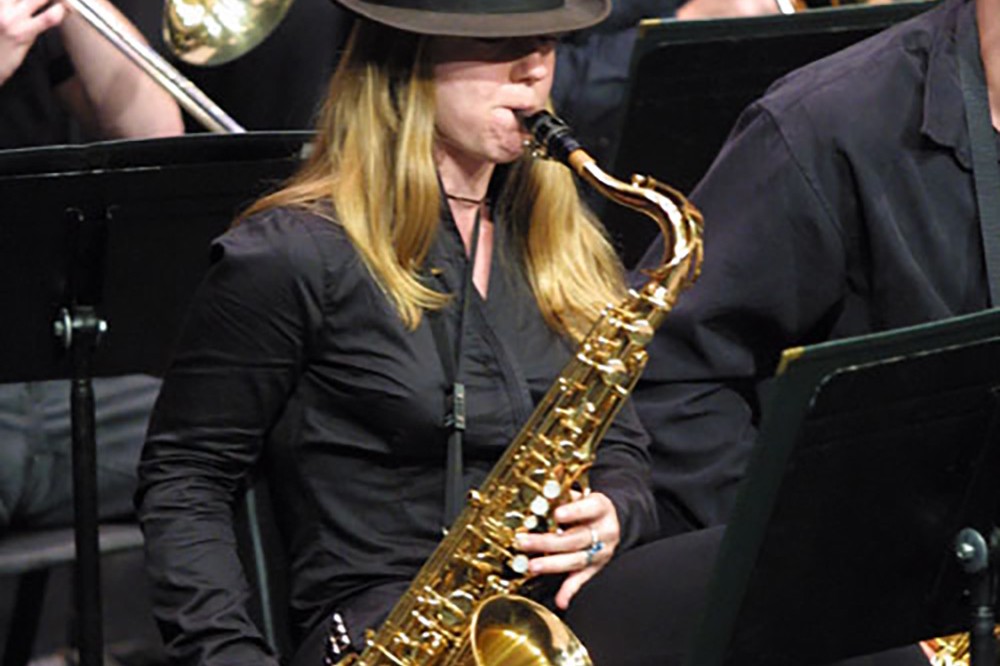 A student performs with the RIT Jazz Ensemble, directed by Jonathan Kruger, assistant professor of music, on Nov. 3, kicking off a week of musical performances in Ingle Auditorium. -