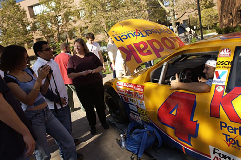 RIT and Kodak celebrate their long-lasting partnership during Kodak Day, Oct. 9. Students check out Kodakâs NASCAR âshow carâ in the Infinity quad. -