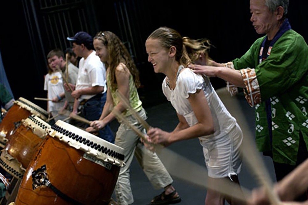 World-famous Japanese Taiko drummers gave two free concerts this month at NTID; one offering hands-on participation. The troupeâs three groupsâKoshu Roa Taiko, Amanojaku, and San Francisco Taiko Dojoâtotal 22, with six deaf members, and range from pre-school to senior citizen. Performances were courtesy of The Nippon Taiko Foundation, The Nippon Foundation of Japan, and the Postsecondary Education Network-International. -