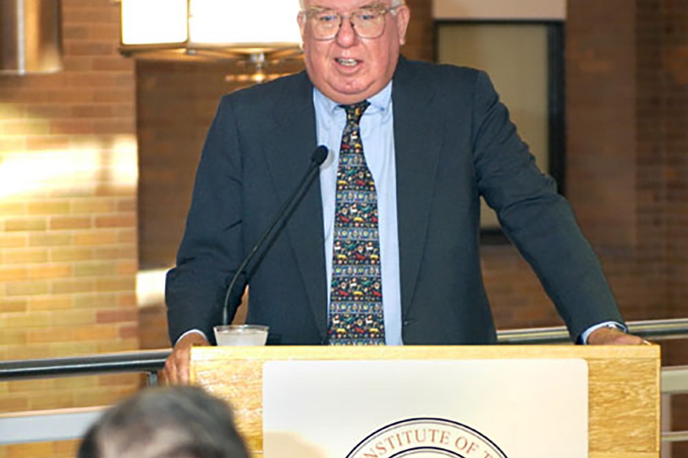 James S. Gleason, chairman of Gleason Corp., announces a $6 million gift from The Gleason Foundation to RIT's Kate Gleason College of Engineering, July 17. -