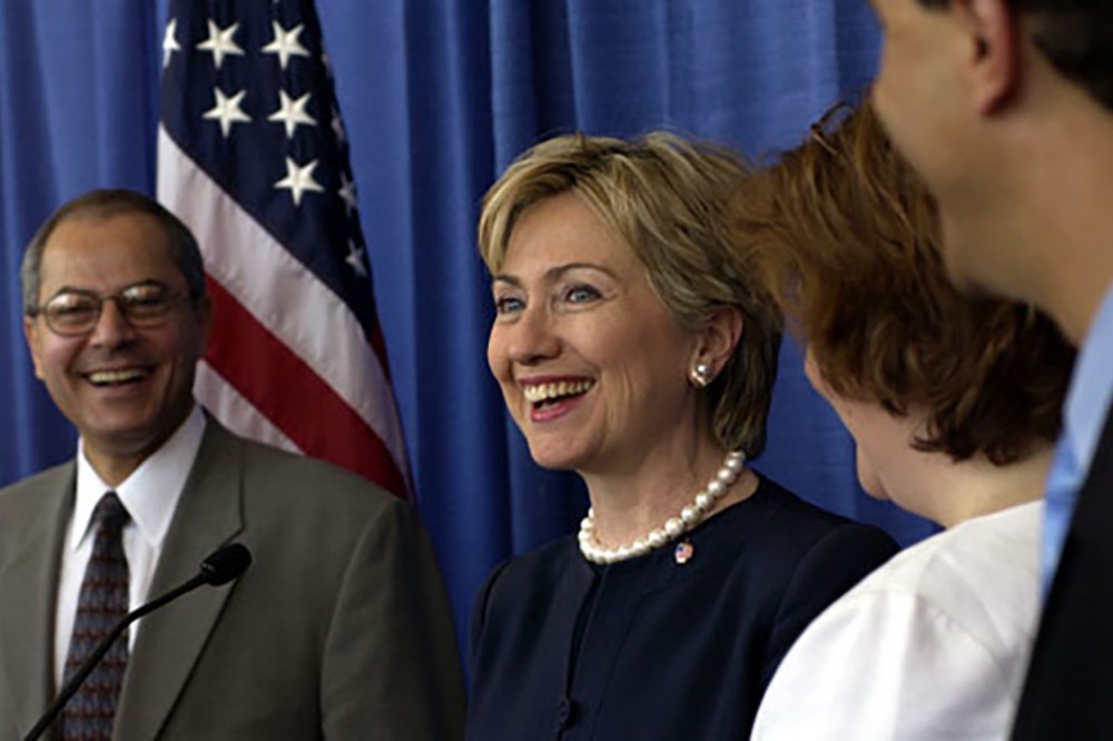 Sen. Hillary Rodham Clinton holds a news conference on the economic potential of fuel cell research and development in upstate New York at RIT, July 28. The news conference followed a roundtable discussion on fuel cells hosted by RIT and Greater Rochester Enterprise. -