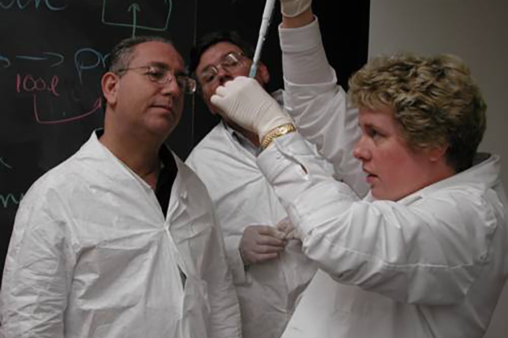 Architectural engineers from the Sear Brown Group attend a three-day workshop at the Center for Biotechnology and Training, Buildings and Biology: Compatibility for Bioprocessing. Nov. 15. Lab manager and presenter Kim Corbett (right) illustrates bioprocessing techniques to workshop attendees. The CBET workshop introduced the Sear Brown staff to requirements for facilities used in the biotechnology industry. -