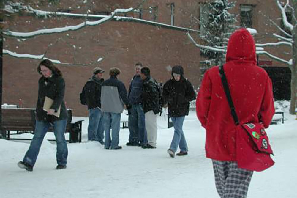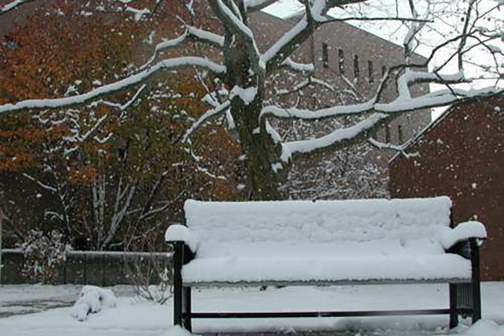 A snowy scene in the Infinity quad at RIT, Nov. 27. -