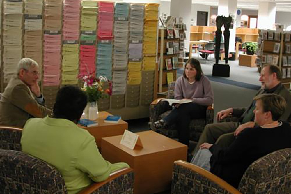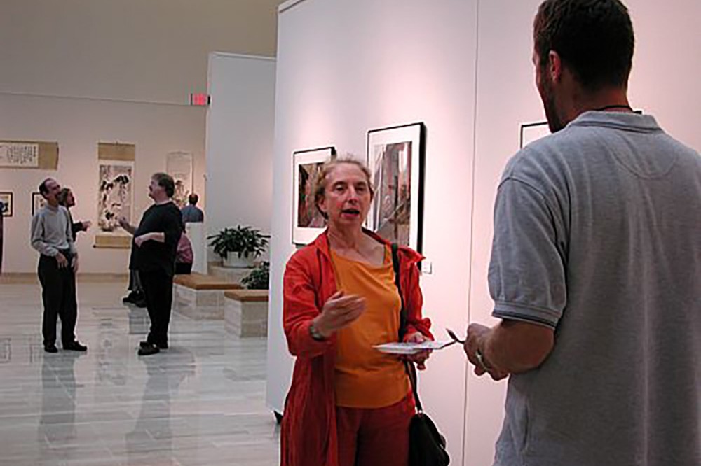 Members of the RIT community gather for the opening of "Perspectives," an exhibit featuring work by seven deaf artists at the NTID Dyer Arts Gallery, Oct. 10. Participating artists include Sander Blondeel, James Canning, Randy Dunham, Donna Gustina, David Prusinski, Song Quan Shen, Eddie Swayze and Alex Wilhite. The exhibit will be on display through Nov. 22. -