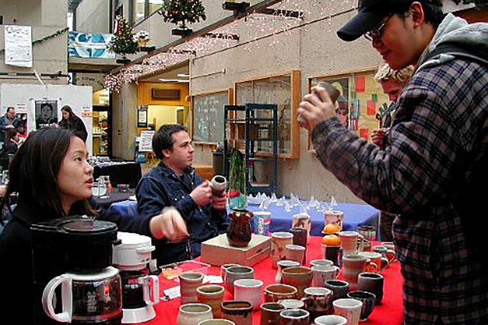 Students browse hand-crafted items at the annual School for American Crafts holiday sale, held Dec.13â14 in the Student Alumni Union. Hand-crafted gift items included glass, metals, jewelry, ceramics, wood and textiles. -