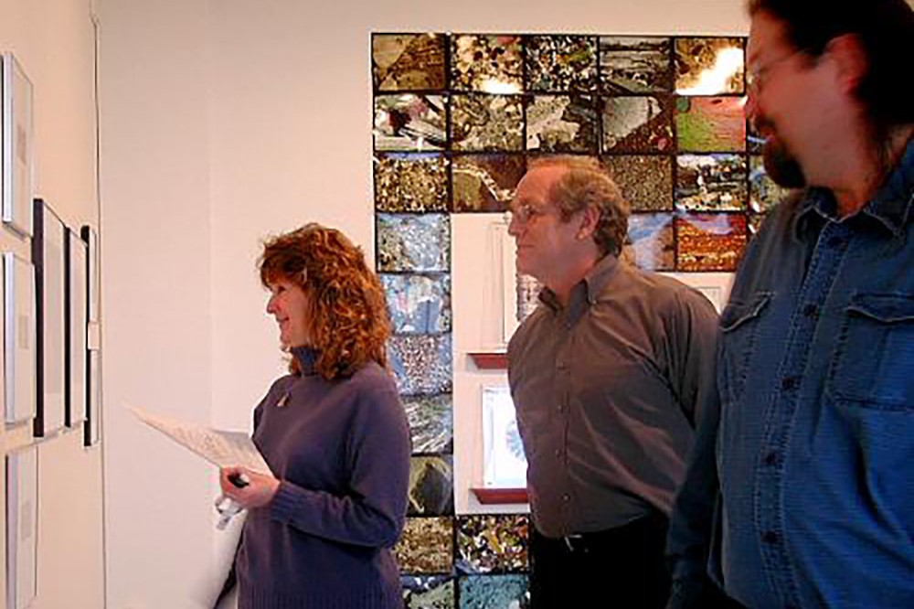 Bill DuBois (center), photographic arts chair of the School of Photographic Arts and Sciences; Kathy Giunta (left), staff assistant; and Dennis Defibaugh, chair of advertising for SPAS, enjoy a sneak-preview of the annual SPAS Faculty Show, Jan. 11. The show runs Jan. 11–25 in the SPAS Photo Gallery located on the third floor of the Gannett Building (blg. 7B). -