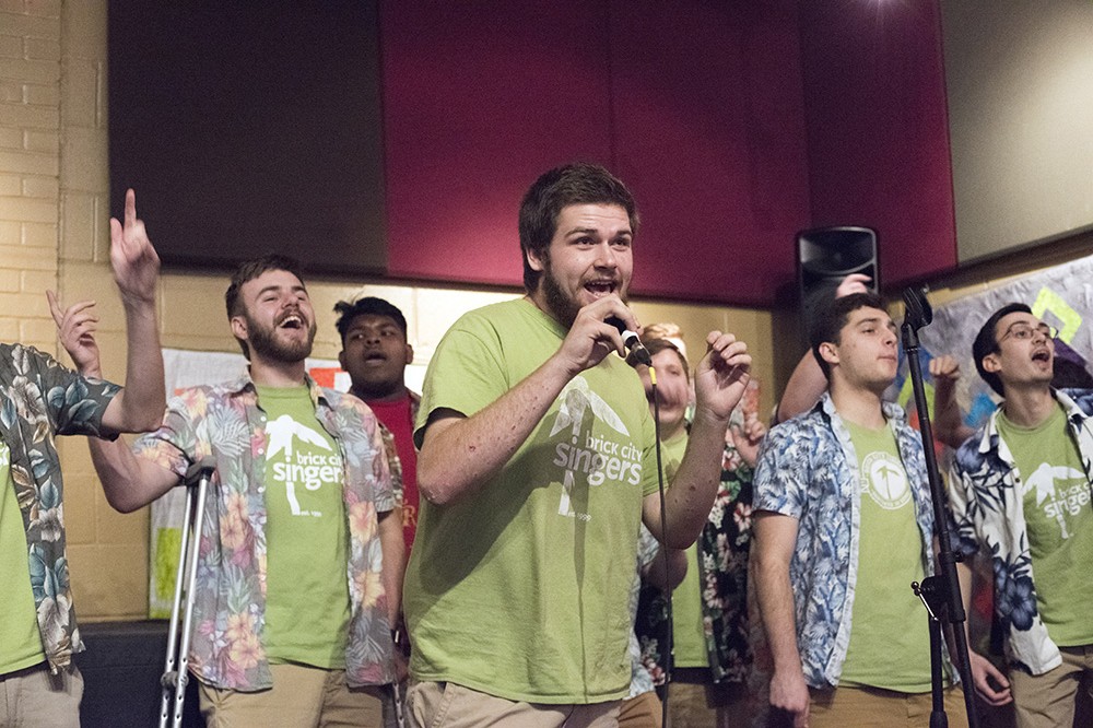 Members of The Brick City Singers, an RIT all-male a cappella group, performed in the Little Cafe at the Fringe Festival Sept. 22. -