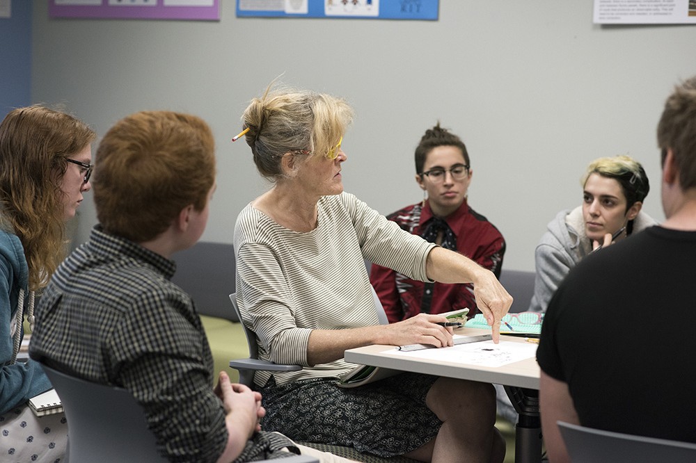 RITâs School of Individualized Study hosted the first in a series of comic lectures with award-winning cartoonist Carol Tyler. Before Tylerâs talk on her memoir about the Beatles, she led a workshop and demo for students. -