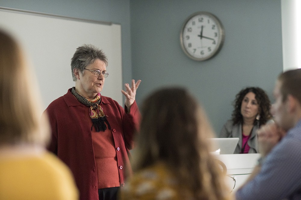 Renowned dietitian and nutritionist Ellyn Satter visited the RIT campus April 24-26. She met students and faculty, and gave public talks on issues surrounding feeding children. Here, Satter taught the Lifecycle Nutrition Class on April 26 to students in RITââ¬â¢s Wegmans School of Health and Nutrition. -