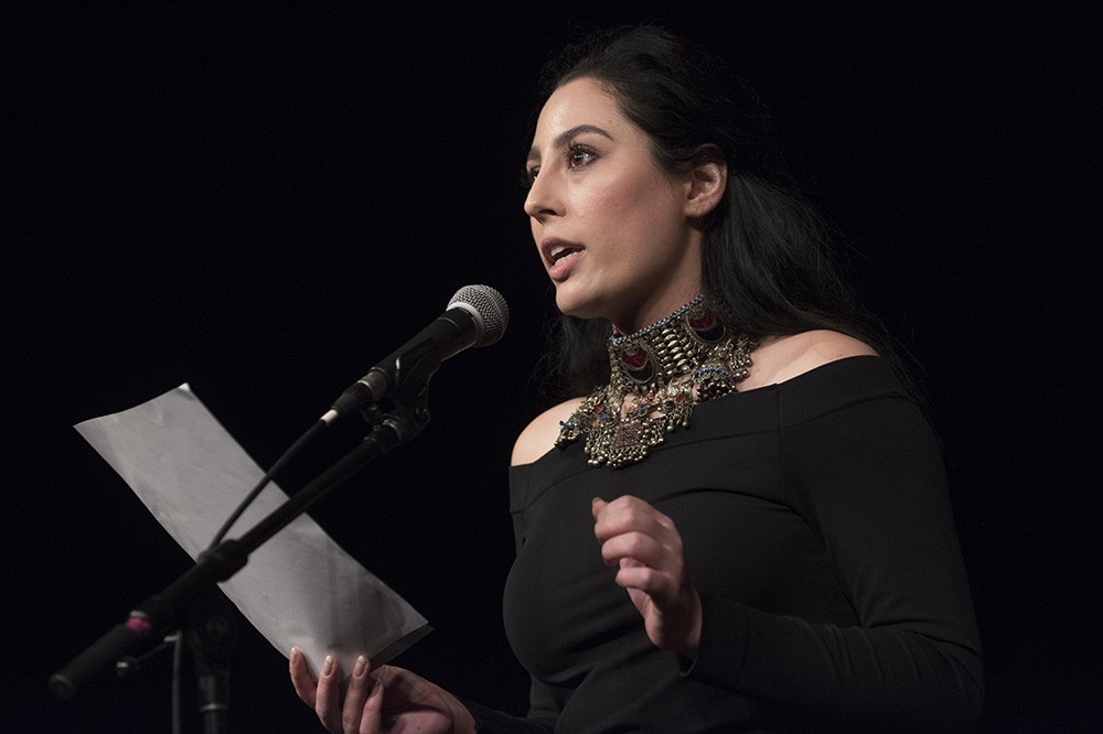 Ferishta Sahar, from Rochester, N.Y., read a poem during the Persian New Year celebration in Ingle Auditorium. The Persian Association of RIT Students (PARS) celebrated Nowruz, the Persian New Year, with dance, music, comedy and food. -