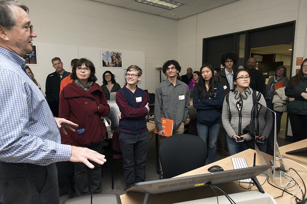 Medical Illustration Program Chair Glen Hintz, left, gave a tour of classrooms and facilities during the RIT Accepted Student Open House on March 31. The Office of Undergraduate Admissions will be hosting another open house this weekend, April 7. -