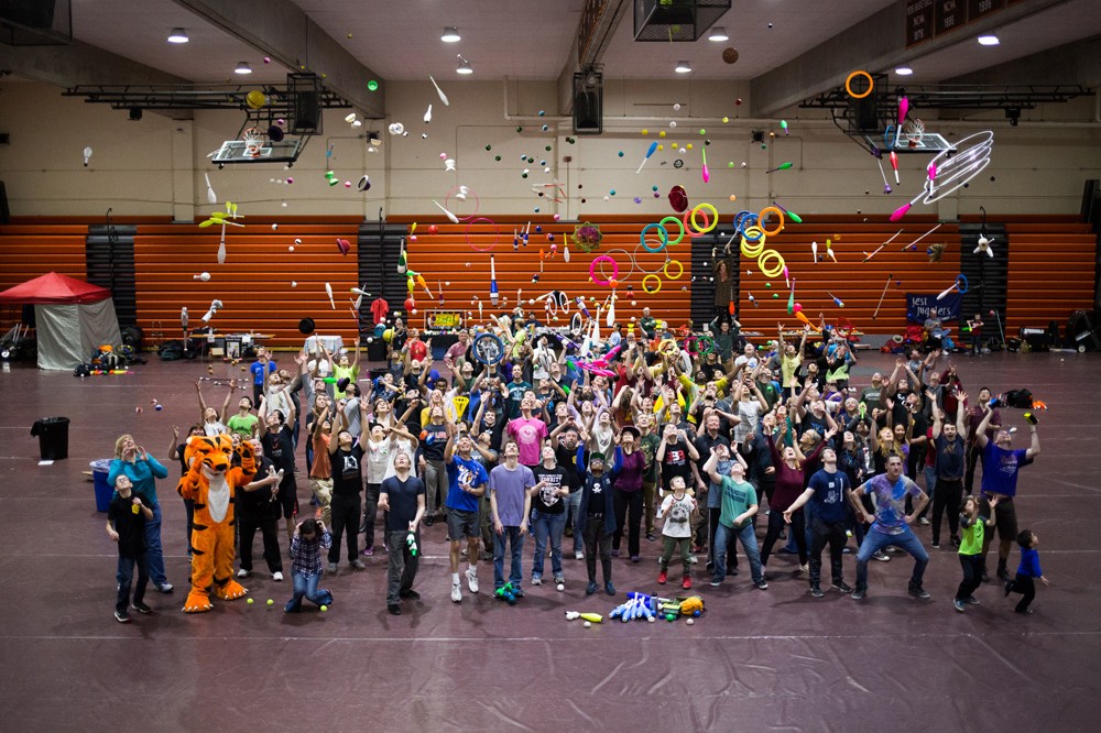 The RIT Juggle-In included workshops and shows in Clark Gym April 6-8. In its 41th year, the event is one of the longest running juggling festivals in North America. Here, participants gathered for the Big Toss-Up. -