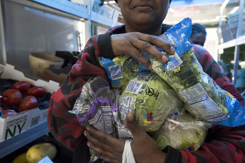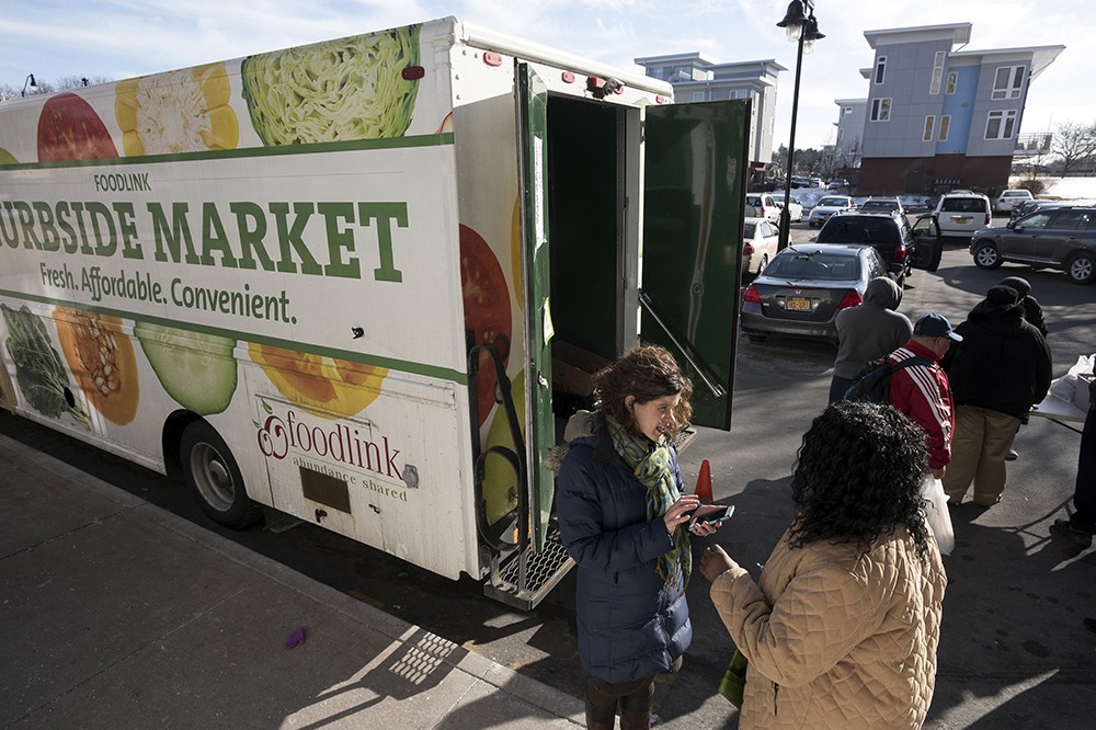 A federally funded pilot program developed by Rochester Institute of Technology professors allows eligible participants to stretch their nutrition-assistance benefits when they buy fresh vegetables at designated Foodlink Curbside Market locations and select Wegmans stores. Elizabeth Ruder, left, assistant professor in RIT’s Wegmans School of Health and Nutrition, is leading the project funded by the U.S. Department of Agriculture Food Insecurity Nutrition Incentive program and matching contributions from RIT and Foodlink. -