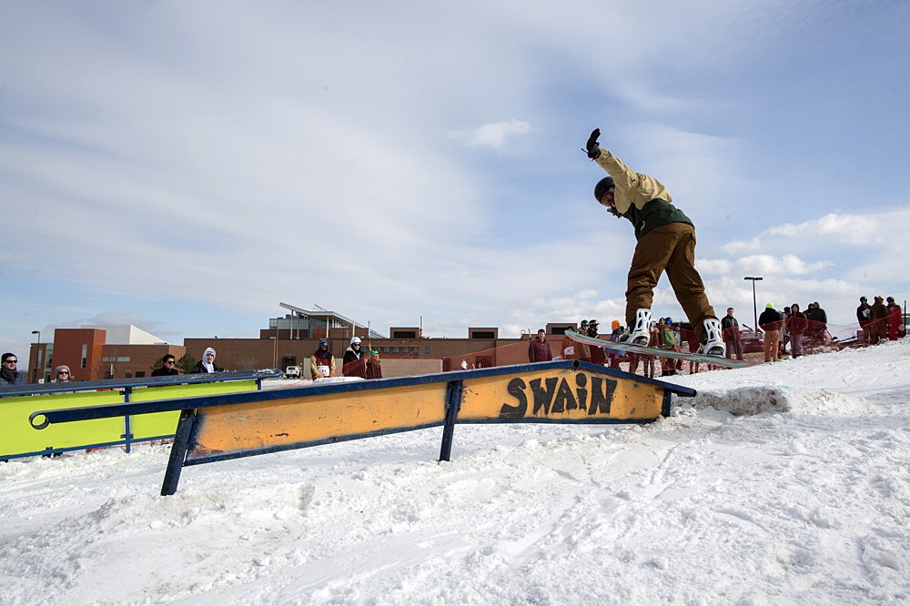 A student competes in the preliminary round of snowboarding at the RIT FreezeFest Rail Jam on Feb. 3. FreezeFest, Feb. 1-4, sponsored by RITââ¬â¢s Center for Campus Life and the College Activities Board, is one of the largest events on campus and the largest in the winter season. -