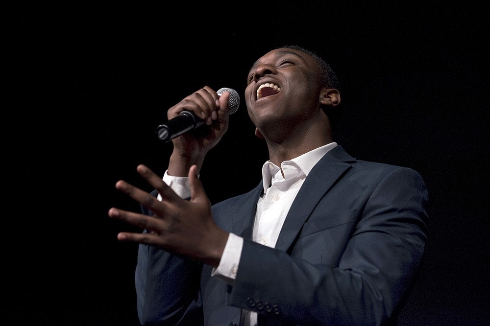 Eastman School of Music student Jonathan Rhodes performed at RIT's first Let Freedom Ring: Commemorating Dr. Martin Luther King, Jr. celebration today. RIT students, faculty and staff assembled in Ingle Auditorium for a program honoring King's life and work on his birthday. Next Thursday, Jan. 25, RIT will host the 36th annual Expressions of King's Legacy celebration, featuring BET News host and CNN political contributor Marc Lamont Hill as keynote speaker, with additional performances by Rochester soul band Danielle Ponder and the Tomorrow People and poet Reenah Golden. -