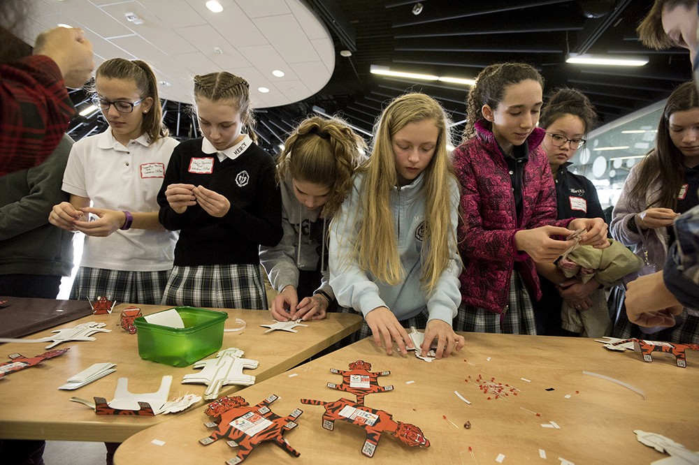 Two-hundred young women from Our Lady of Mercy School for Young Women in Rochester visited RIT Jan. 17 for a daylong enrichment experience. The girls were able to design video games in the MAGIC Center lab, learn about engineering models and conduct simple science experiments. They also toured campus and were able to ask questions to RIT female students studying in these areas. The day was sponsored by RITââ¬â¢s MAGIC Center and University Center for Engaging K-12. -