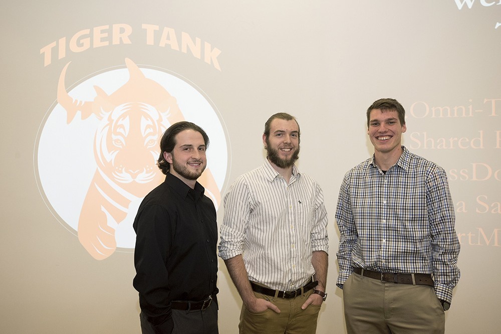 The annual Tiger Tank entrepreneurship competition was held Nov. 16. Winners were Omni-Temp who presented their business idea for regulating the temperature of a carââ¬â¢s interior. Pictured from left to right, are Evan Pace, Andrew Pfeil and Mark Batorski. The winners also received full scholarships for the Saunders College of Business graduate programs and $2,000. The event is sponsored by the Saunders College of Business and hosted by the Simone Center for Innovation and Entrepreneurship.