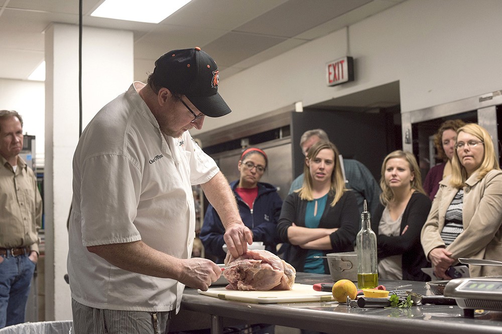 The Better Me Wellness program, in collaboration with Dining Services, is offering faculty and staff themed cooking classes. Chef Oscar Oââ¬â¢Flynn demonstrated how to debone a turkey breast during a recent class on preparing a holiday meal. The next class is 4-6 p.m. Dec. 13 for ââ¬ÅAppetizer Recipes.ââ¬Â RSVP to betterme@rit.edu as space is limited. -