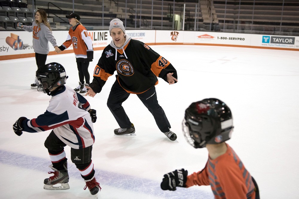 Ian Andriano, a first-year marketing major from Barrie, Ontario, skated with some budding hockey players during the RIT menââ¬â¢s and womenââ¬â¢s hockey open holiday skate on Dec. 3. Fans met and skated with members of the RIT hockey teams in the Gene Polisseni Center. -