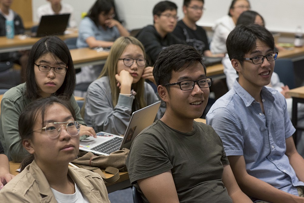 As part of RITâs partnership with Beijing Jiaotong University, 38 Chinese students majoring in Saunders College of Business management information systems are attending a summer program on campus. They are delving into American life while taking classes in English language and global business education. Saunders College lecturer Les Moore leads a class on âImproving ideas for innovation.â The BJTU students will participate in RITâs Undergraduate Research Symposium on Aug. 4. -