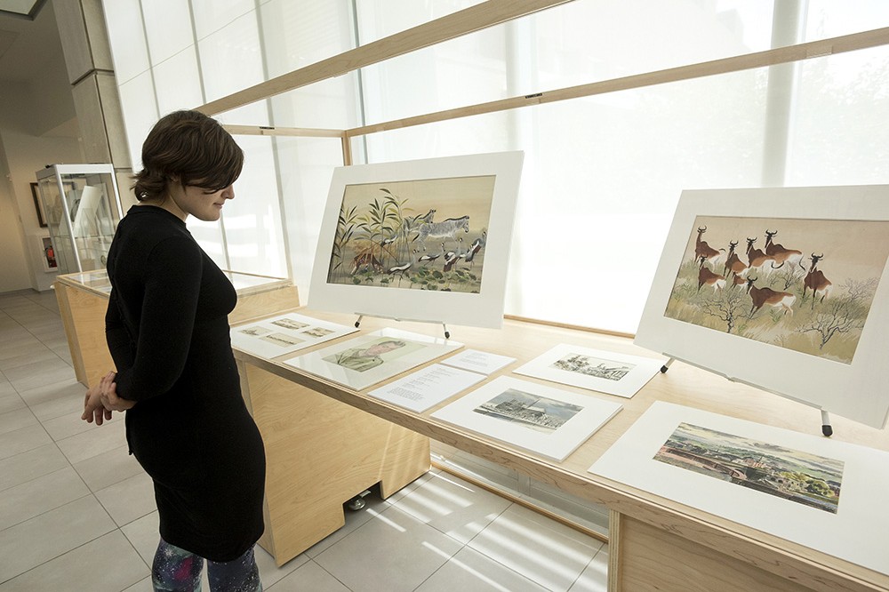 Angela Krieg, a third-year illustration student from Hebron, N.Y., views a portion of âArthur Singer, The Wildlife Art of an American Masterâ in the University Gallery. A reception is planned for 5â7 p.m. Sept. 8. A biography written by Arthur Singerâs sons Paul and Alan Singer is available from RIT Press. -