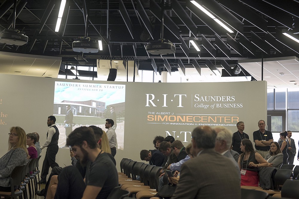 RIT students worked hard this summer during the Saunders Summer Startup entrepreneurship program, hosted by the Simone Center for Innovation and Entrepreneurship. 11 teams presented their business ideas to a group of potential investors from the community at Investor Night, Aug. 9. -