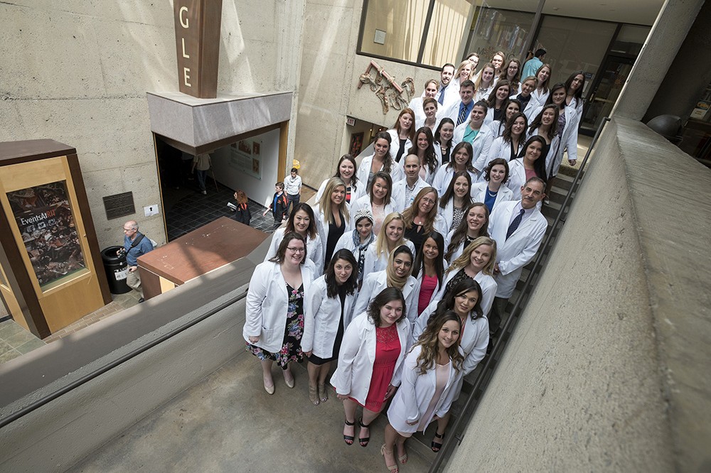 RIT’s Class of 2017 included a record number of 44 students from the diagnostic medical sonography program in the College of Health Sciences and Technology. The program held its traditional pinning ceremony on May 18. Each senior received a pin bearing the name of their program on the front, and their individual initials engraved on the back. “The pinning ceremony signifies the initiation into the brotherhood and sisterhood of sonographers,”said Hamad Ghazle, director of diagnostic medical sonography. “It signifies a vow that the graduating sonographers will tirelessly, respectfully and compassionately serve the sick. The pinning ceremony is all about celebrating and honoring the ultrasound students and their journey into the world of ultrasound. It is also about faculty and staff who celebrate and cherish the accomplishments of their students.”