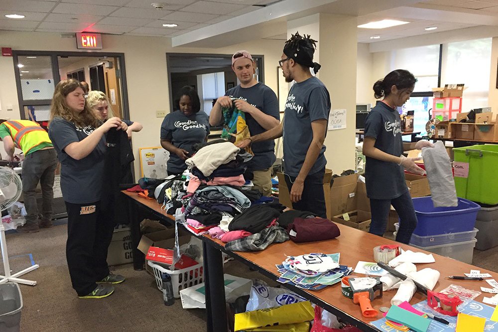 Volunteers sort items left behind by students moving out of the dorms for the upcoming Goodbye, Goodbuy! sale in August. The sale, led by students, urges students moving out of their dorms and on-campus apartments to donate their furniture, clothes, canned goods and other items. The items will be sorted and what can be reused will be sold at thrift store prices to students coming to RIT in August.