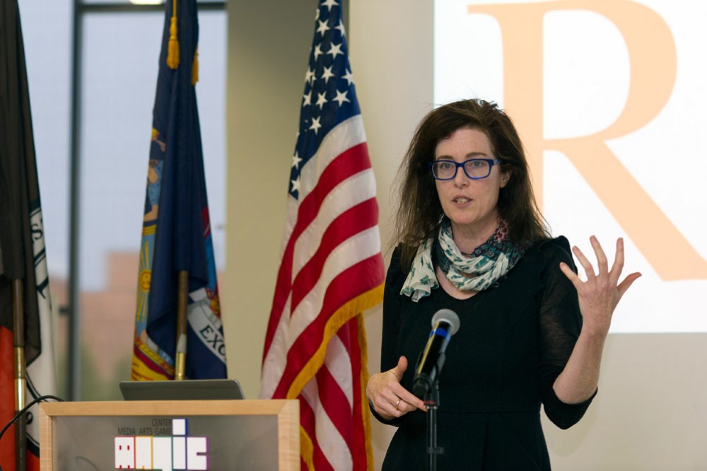 Kara Massie, producer at Vicarious Visions, spoke at the kickoff for the first-ever New York State Game Dev Challenge at the MAGIC Center. On March 10, RIT announced the New York State Game Development Challenge, a statewide competition for students and indie developers that will help bring game ideas to production. Participants will have about nine weeks to develop their games and winners will be announced during an event in May. RIT was named one of three Digital Gaming Hubs in New York state by Empire State Development. The goal is to increase the economic impact to New York state by fostering innovation and creating collaborative activities that spur new games or companies as well as providing resources and mentoring to encourage students and entrepreneurs to enter the growing gaming industry. -