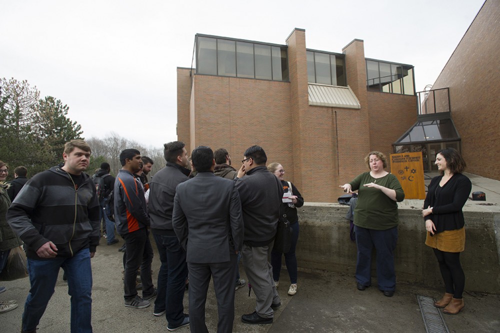 Members of student government gather to listen to the Carillon play for the first time since 2014 on March 24. -