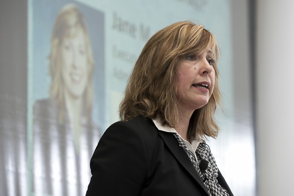 RIT alumna Jane M. Elliott, executive vice president and chief administrative officer for Global Payments based in Atlanta, delivered the keynote presentation at the eighth annual Power Your Potential womenâs networking event hosted by Saunders College of Business. -